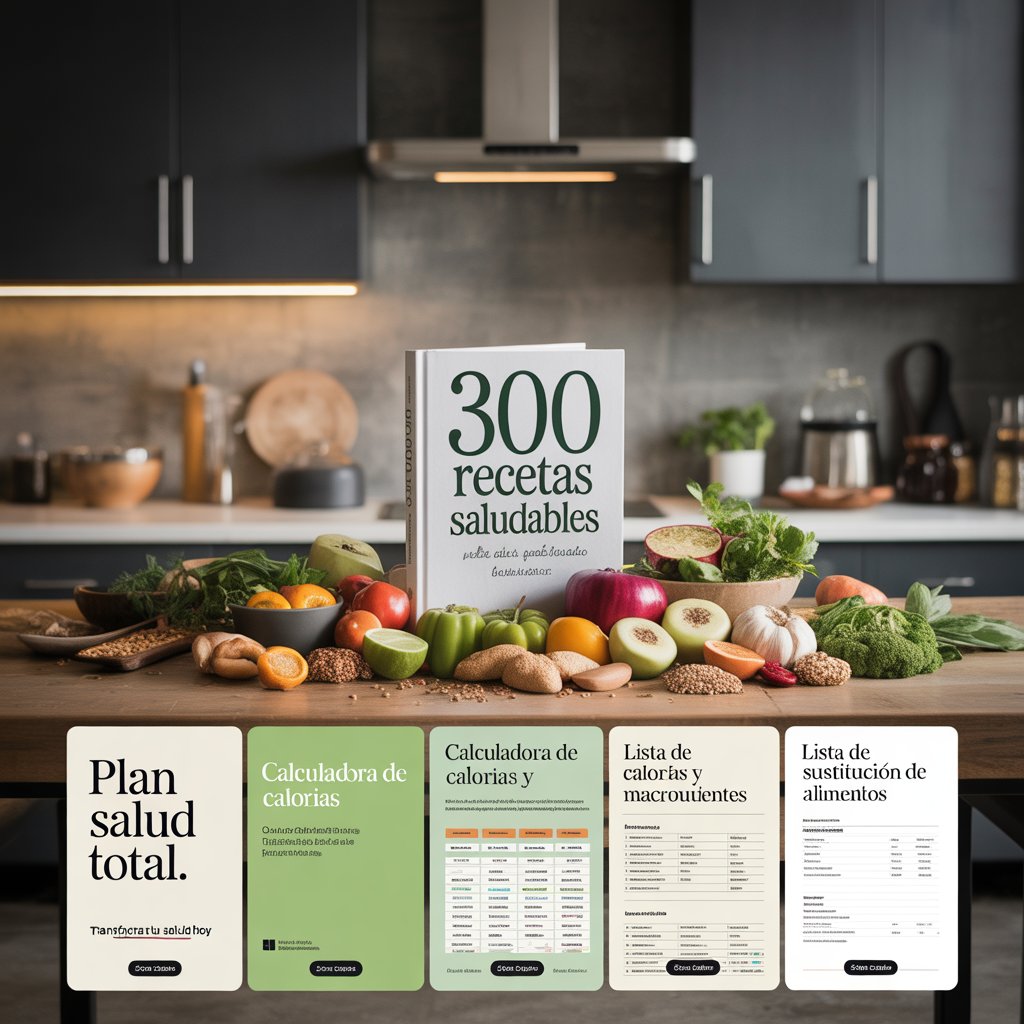 Con este recetario digital exclusivo tendrás acceso a 300 recetas saludables, rápidas y deliciosas, pensadas para ayudarte a adelgazar de forma natural, sin complicarte y sin dejar de disfrutar la comida.